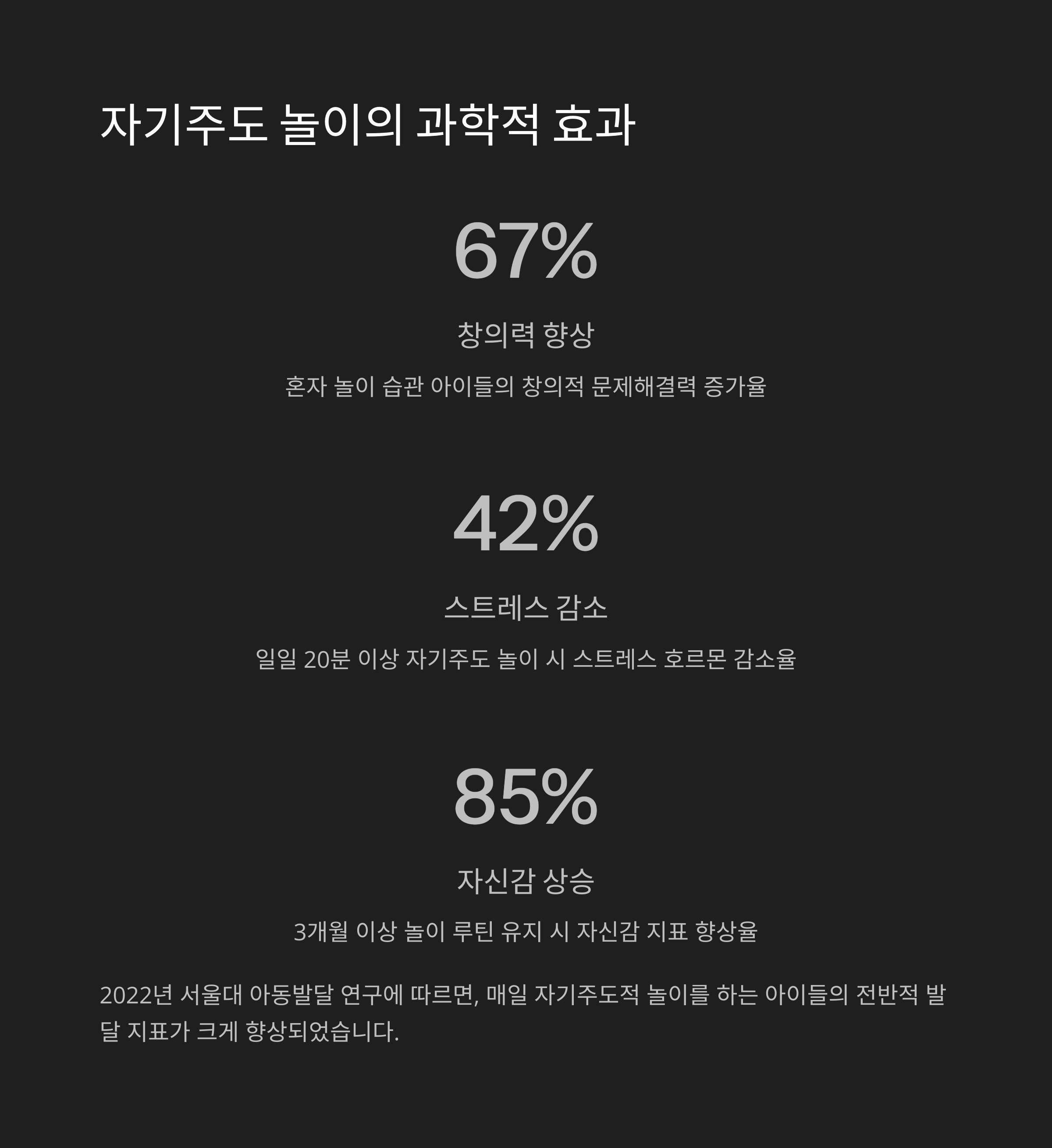 | 자립심 발달 | 스스로 선택하고 몰입하는 놀이 루틴 형성 |