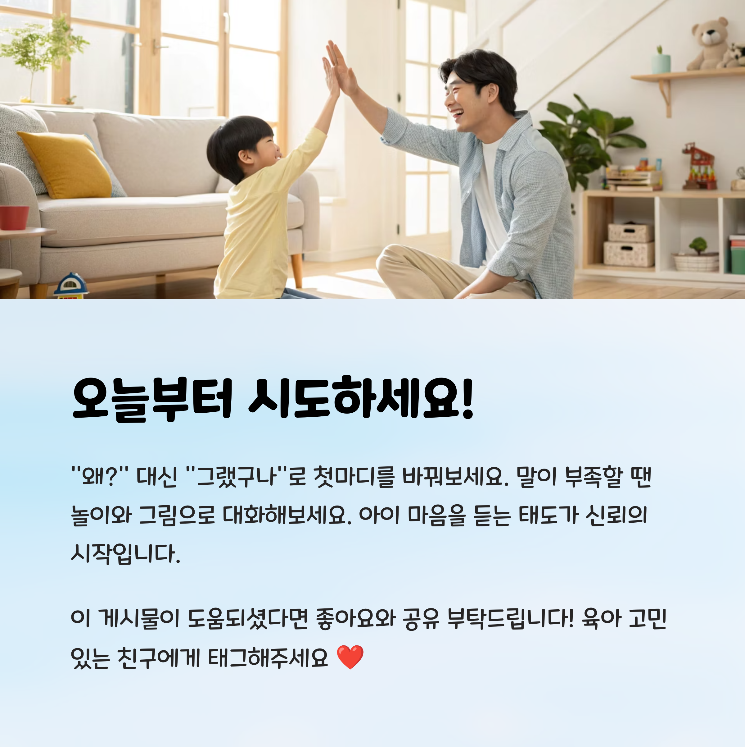 | 소통의 핵심 | 아이의 감정을 먼저 읽고 반응해주세요. |