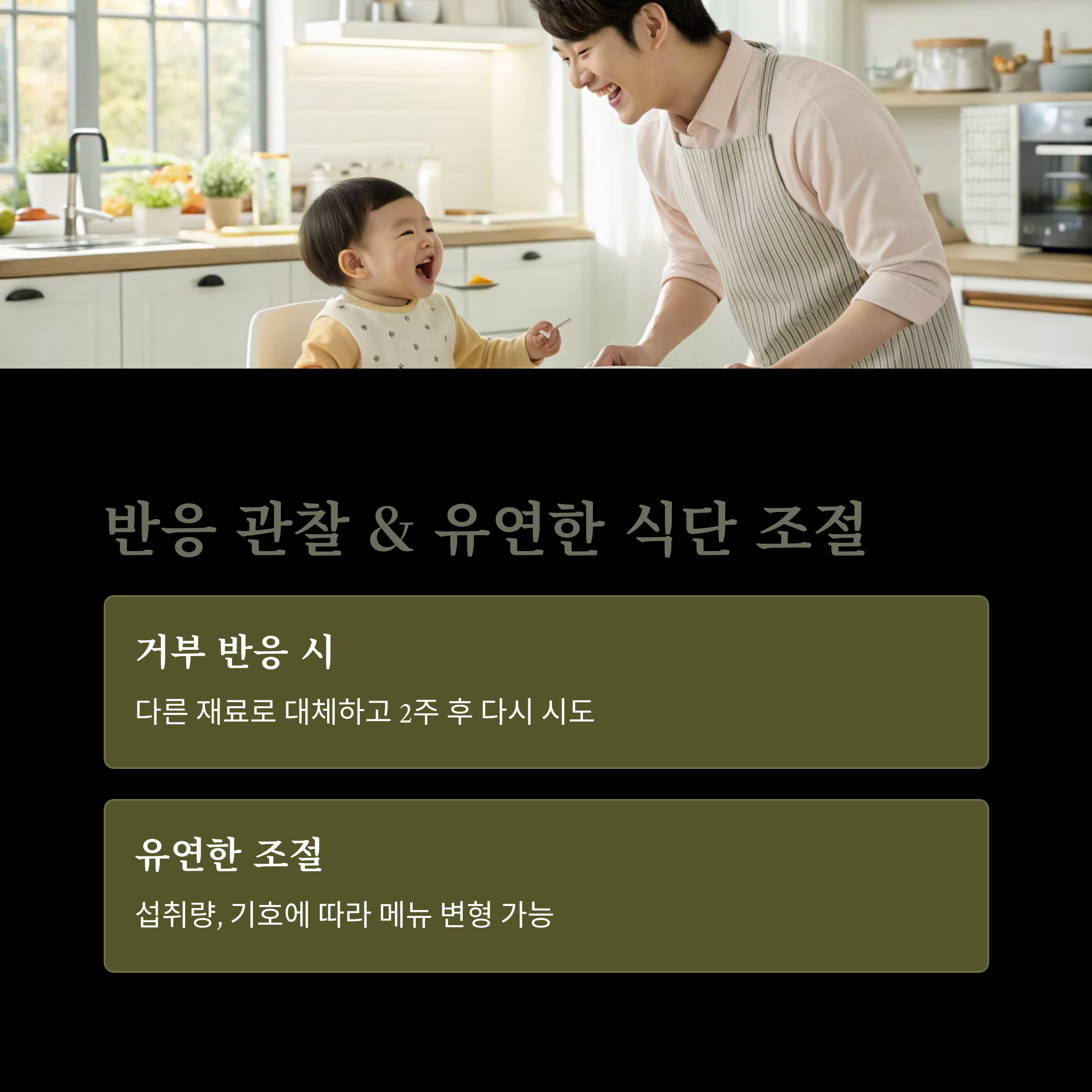 이유식에서 가장 중요한 것은 아이의 반응과 건강 상태를 꾸준히 관찰하는 것입니다. 오늘 잘 먹은 식단은 메모해 두고, 거부한 음식은 잠시 쉬었다가 나중에 다시 도전해 보는 유연함이 필요합니다. 무엇보다 중요한 건, 조금씩, 천천히, 즐겁게 이유식을 해나가는 것입니다. 우리 아이가 건강하고 행복하게 성장할 수 있도록 식단표가 길잡이가 되어줄 거예요.