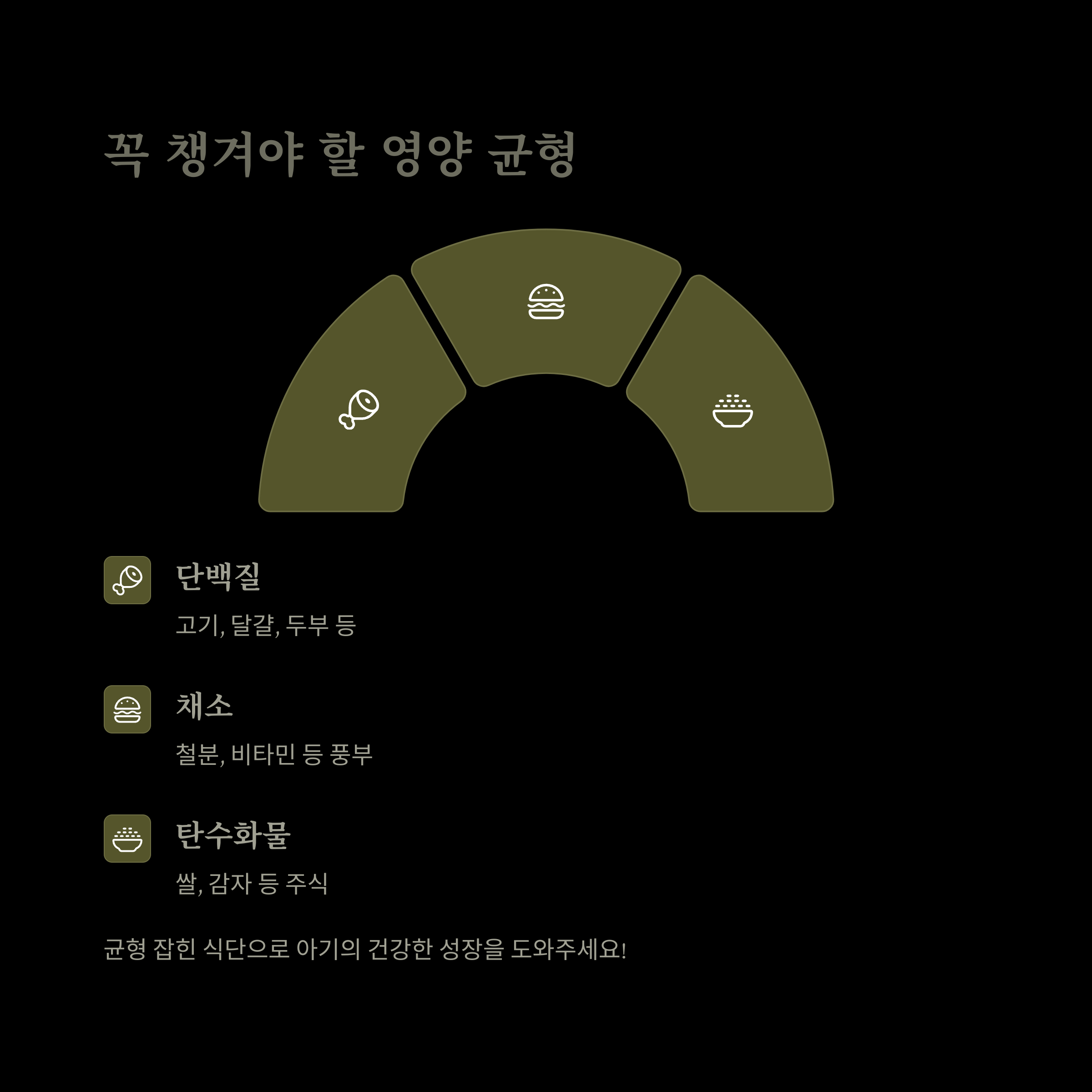 | 아침, 점심, 저녁 균형 맞춰 구성 | 단백질+탄수화물+채소 조합 필수 | 달걀찜, 야채죽, 고기무른밥 등 |