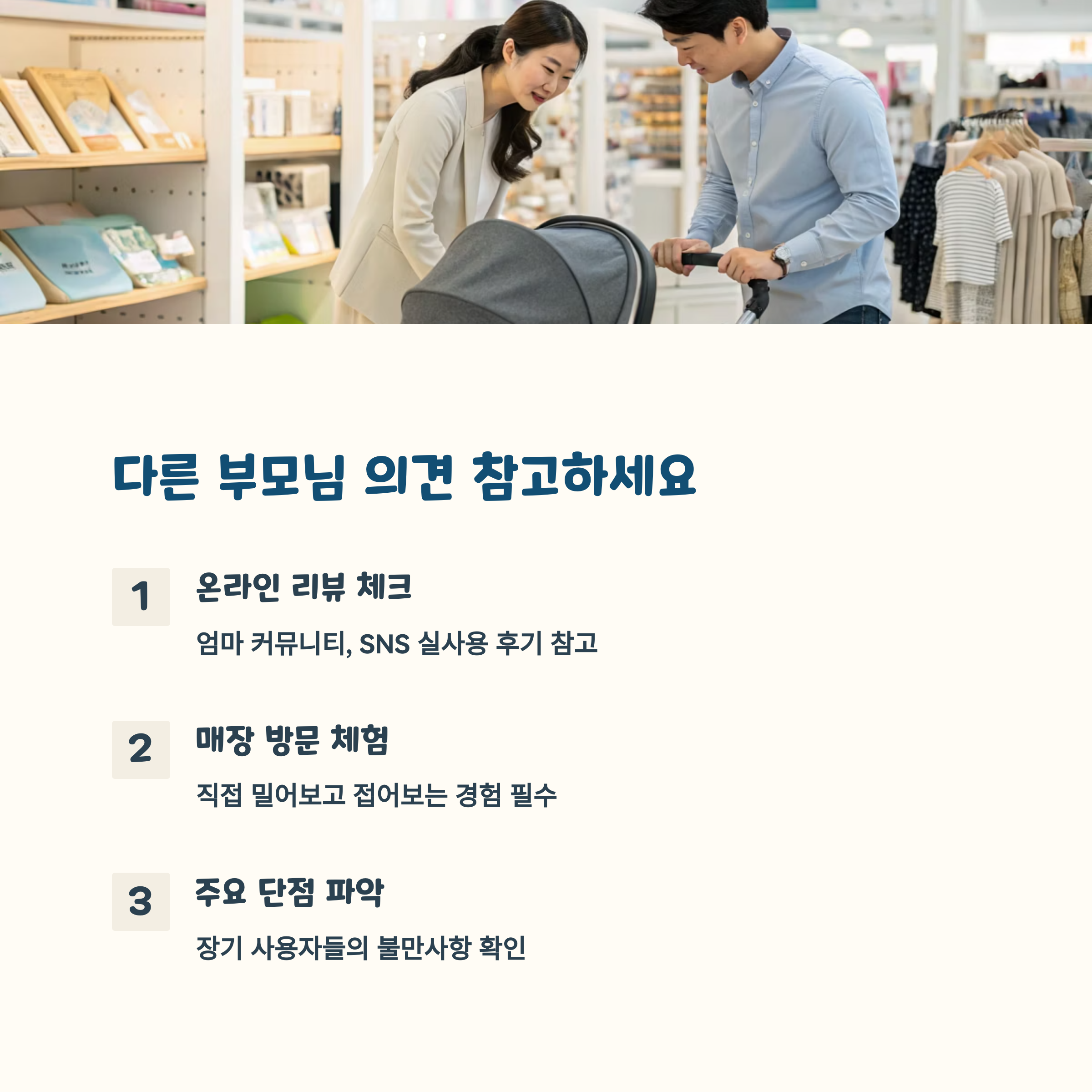어떤 유모차를 선택하셨나요? 구매 후 어떤 점이 만족스러웠고, 어떤 점이 아쉬웠는지 여러분의 생생한 이야기를 댓글로 공유해 주세요. 예비 부모님들께 큰 도움이 됩니다!
