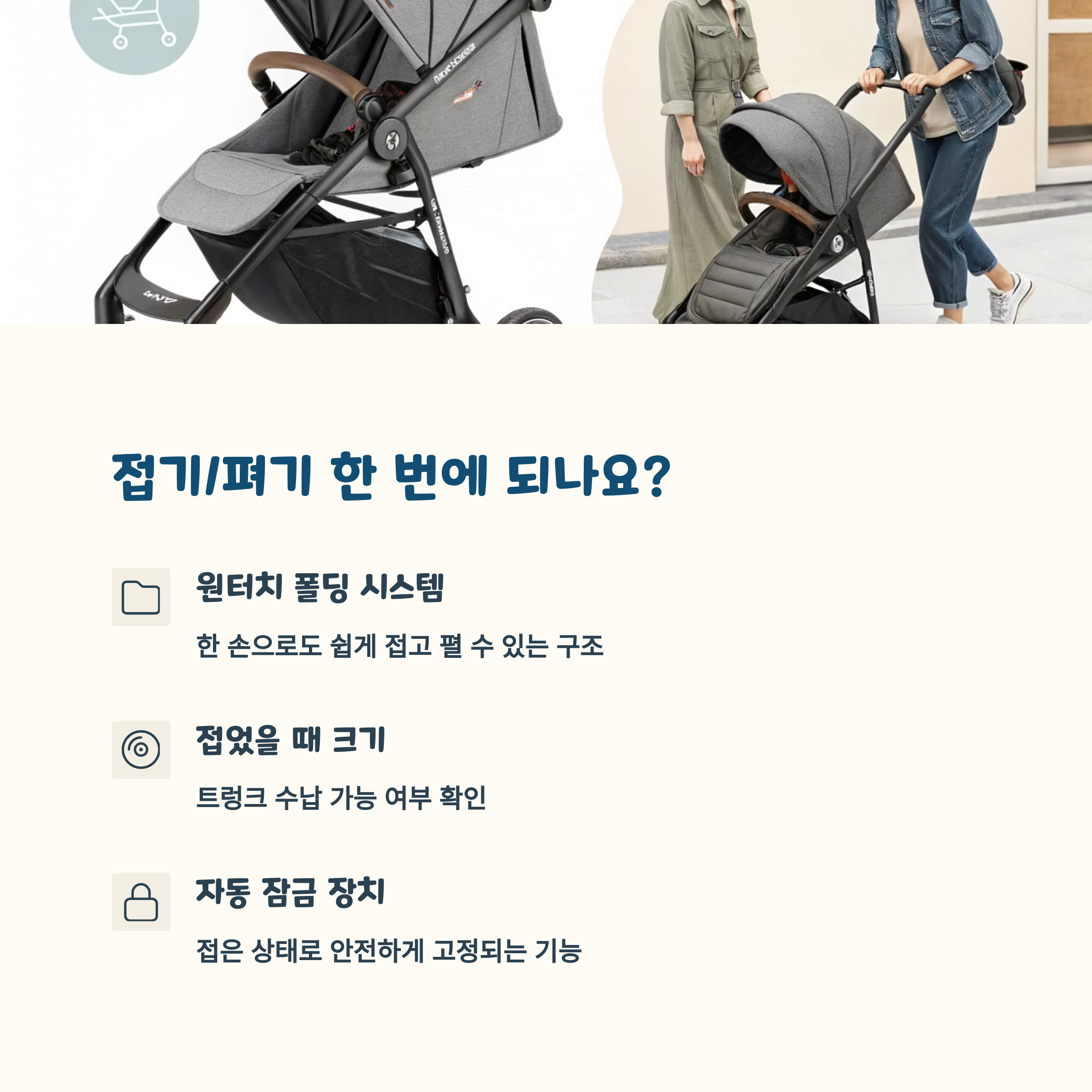 사용 후기들을 보면 “무게가 생각보다 무겁다”, “하차 공간에서 펼치기 어려웠다”는 의견이 많았습니다. 실제로 아이를 안고 한 손으로 접는 일이 생각보다 많기 때문에, 체험 매장에서 꼭 직접 사용해 보는 것이 좋습니다. 또한 햇빛 가리개(캐노피)의 크기와 조작감, 하부 바구니 공간 역시 실사용 만족도에 큰 영향을 미칩니다. 후기에서 자주 언급되는 단점이나 불편 요소들을 체크리스트처럼 참고하는 것도 좋은 방법입니다.
